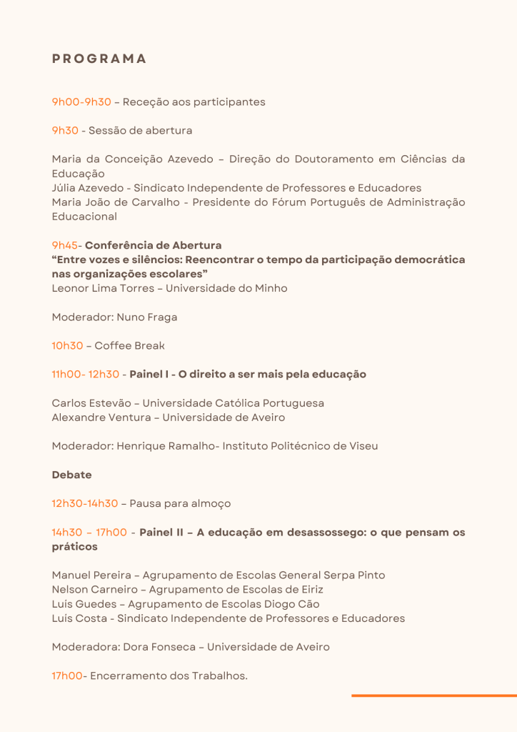 X Encontro de Outono do Fórum Português de Administração Educacional: “Entre velhos e novos desafios da Escola: tempo de repensar práticas e reinventar caminhos”